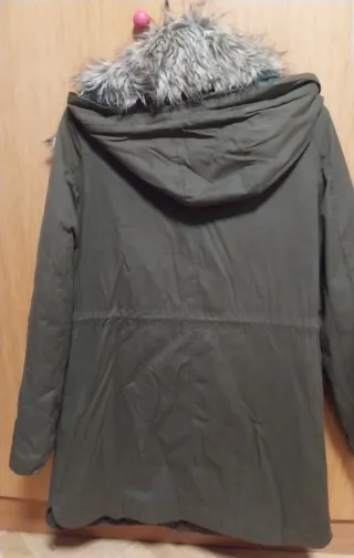 Abrigo tipo parka, ideal para el frío. Cuenta con un diseño acolchado y un acabado en color verde militar. - Capucha con pelo. - Cierre de cremallera. - Bolsillos frontales. Puesto solo un dia Impecable Precio en tienda 115