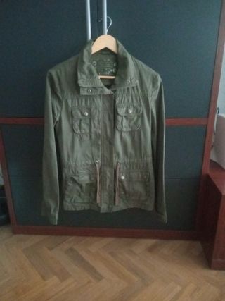 Chaqueta con cierres automáticos. Color marrón caqui. En muy buen estado. Poquísimo.uso. es una M aprox