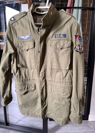 Chaqueta estilo militar de Polo Ralph Lauren kids en color verde. Talla 18/20 Años - Cuello alto. - Cierre de cremallera y botones. - Bolsillos frontales con solapa. - Parche U.S.-R.L. en el pecho. - Parche de aviación en el pecho izquierdo. - Parche con escudo en la manga derecha.