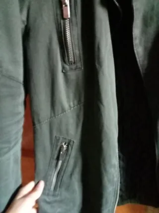 Chaqueta diseño militar. Talla M, pero sirve como S. Tejido tipo chubasquero. Puesta un par de veces, pero está como nueva. Es muy cómoda, la vendo porque no la uso nunca y me da pena💚