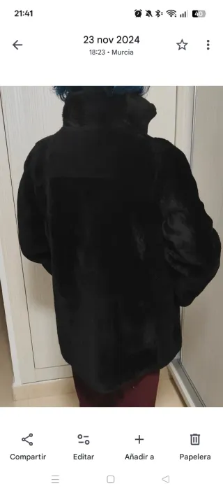 Chaquetón de moutón auténtico (piel natural) de color marrón, en estado impecable. Está como nuevo, usado solo muy pocas veces. El pelo exterior es suave y está en perfecto estado, sin calvas ni desgaste. Por dentro no lleva pelo, lo que lo hace cómodo y fácil de llevar. Es una prenda muy calentita, elegante y atemporal, ideal para invierno. Corte clásico, largo medio (no excesivamente largo), queda muy bonito puesto. Una prenda de calidad que dura muchos años si se cuida bien. 📸 Las fotos no le hacen justicia: en persona es mucho más bonito.
