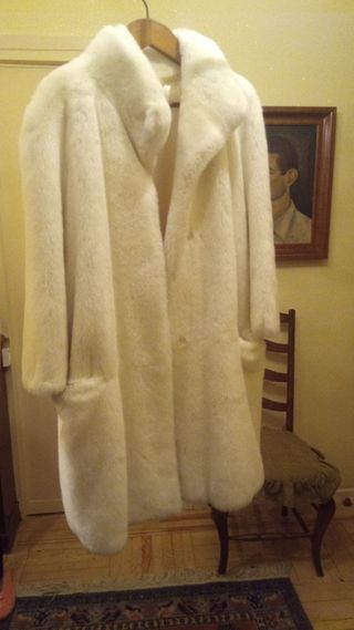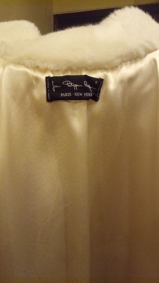 Precioso abrigo blanco de moutón original y fabricado en Francia (hay foto de la etiqueta) está en muy buen estado. Llevo la talla 40-42 y me sirve perfectamente, la manga queda un poco más arriba de la muñeca