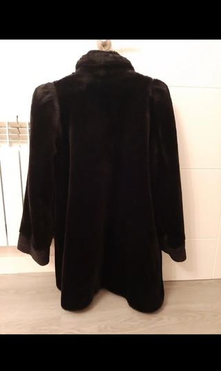 Abrigo negro de moutón de peletería. La talla puede estar entre una 40-42 porque es la que tengo y me sirve