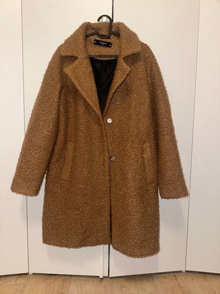 Abrigo de pelo sintético con un diseño moderno y cálido. - Material suave y confortable. - Cierre de cremallera. - Capucha integrada.
