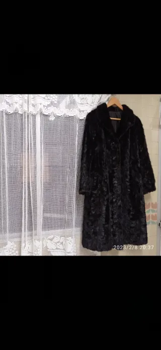 Elegante abrigo largo de piel auténtica. - Diseño clásico y atemporal. - Tacto suave y agradable. - Cierre frontal.
