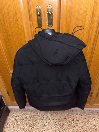 Chaqueta acolchada con capucha. - Diseño bicolor en negro y gris. - Cierre de cremallera frontal. - - Logo de la marca en la manga. -talla 12 años Pesa muy poco,muy cómoda.