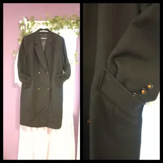 ✓Elegante abrigo para un look oversize, de unos 123cm de largo. ✓Todas las medidas en fotos. ✓90% Lana virgen alta calidad ✓Color negro ✓Impecable. ✓Medidas en fotos. ✓Botones en mangas ✓Forro de alta calidad en perfecto estado Un clásico atemporal para cualquier guardarropa. NO OFERTAS POR FAVOR, NO NEGOCIABLE ***Si desea envío por inPost, escríbame antes de pagar, para cambiar el envío al mínimo. - 90% Lana virgen de alta calidad. - Diseño de doble botonadura con botones dorados. - Forro interior satinado impecable.