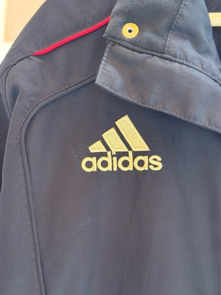 Chubasquero cortavientos de la marca Adidas. - Diseño en color negro con detalles dorados. - Logo de Adidas bordado en la parte frontal.