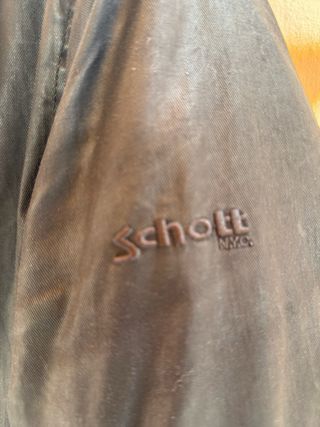 Chaqueta estilo chubasquero de la marca Schott. - Color negro. - Cierre de botones. - Cuello solapa.