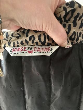 Abrigo con tejido similar al ante pero más suave al tacto. Estampado grabado y remates de imitación charol. Puesto en muy contadas ocasiones. Podría servir para un poco más de talla si el hombro no es muy ancho y un poco menos si lo es porque no es rígido y acomoda. Se adapta al movimiento como un vestido pero abriga. No se arruga fácilmente. Ideal para fiesta. He modificado algo el color de las fotos para acercarme al color original para que aparezca bien el dibujo que es como se ve al natural. Realmente es elegante y muy agradable a la vista. Tiene presencia y es llevadero en otoño y primavera que son fechas de bodas