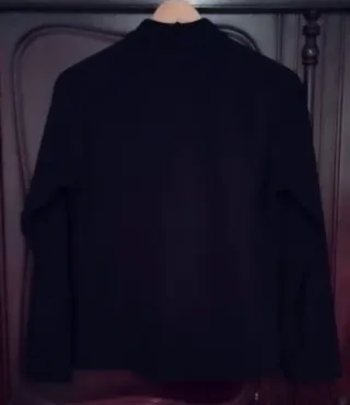 Torera de ante con un diseño elegante. - Material: Terciopelo. - Color: Negro. - Nueva. Usada una vez. - Muy bien conservada. No muestra signos de desgaste, ni desperfectos. - Muy cómoda, ligera, práctica tanto para invierno como primavera. **Medidas** Ancho(Hombros): 40cm Largo: 44cm