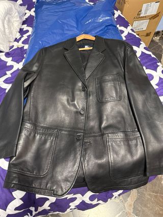 Elegante chaqueta de cuero. - Diseño clásico. - Cierre de botones. - Bolsillos frontales. Talla 52