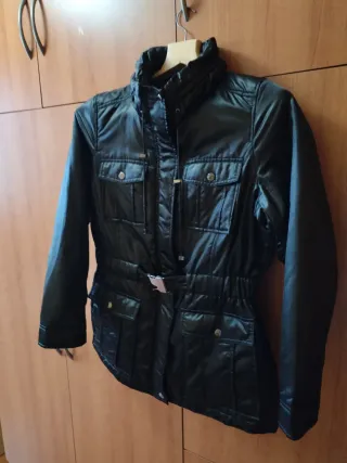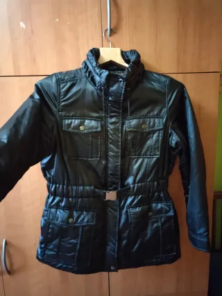 Chaqueta acolchada con detalles modernos. - Capucha con pelo sintético. - Cierre de cremallera frontal. - Bolsillos laterales con cremallera. - Cordones ajustables en la cintura. -da poca talla -puedo bajar a 25
