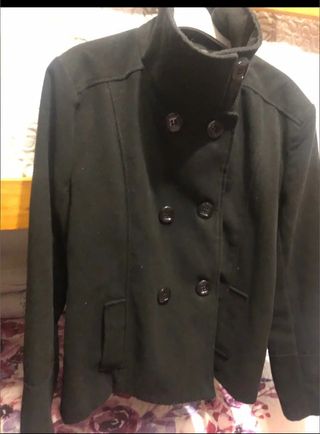 Elegante chaquetón negro. - Diseño clásico con cuello. - Cierre de botones. - Bolsillos frontales. CHAQUETON IDEAL PARA EL FRIO.