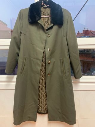 Elegante abrigo de mujer con cuello de pelo sintéticoTiene un pequeño agujero en la manga por la parte interior - Cierre de botones. - Diseño clásico y atemporal. - Ideal para el frío.