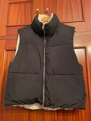Chaleco acolchado reversible. - Diseño acolchado. - Cuello alto. - Cierre de cremallera frontal. - Cordón ajustable en el bajo.