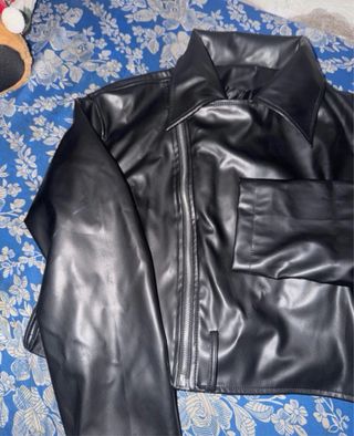 Chaqueta de cuero negra con un diseño moderno y elegante. - Cuello redondo. - Cierre de cremallera. - Bolsillos frontales.