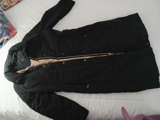 Abrigo acolchado largo, ideal para el frío. No pesa. Sin usar casi. Bolsillos con cremalleras. Cierre opcional cremallera y/o automáticos . Prenda "chollo". - Cierre de botones. - Diseño acolchado. - Bolsillos laterales. Posible entrega en mano Bilbao o envío