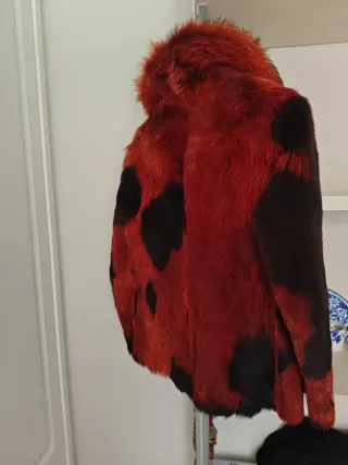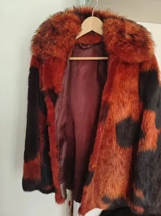 Abrigo de pelo sintético con un diseño llamativo. - Talla M/L. - Combinación de colores naranja y negro.