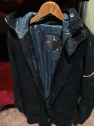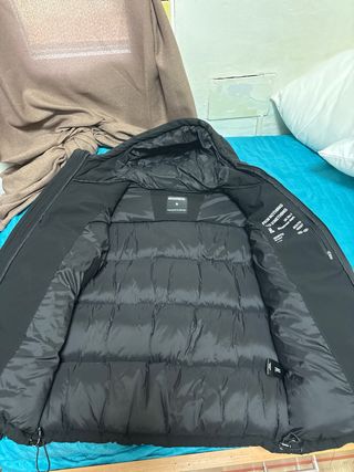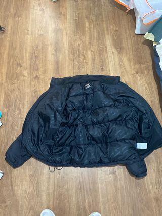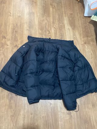 Chaqueta acolchada con acabado brillante. - Capucha con ribete de pelo. - Cierre de cremallera frontal. - Bolsillos laterales con cremallera. - Parche distintivo en la manga Se vende porque me queda pequeño, esta nuevo solo lo use 2 veces