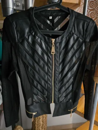 Cazadora polipiel y tul negra talla M