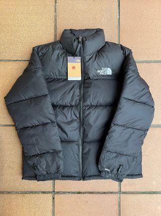 Chaqueta acolchada The North Face con diseño bicolor. - Parte superior negra. - Parte inferior blanca. - Cuello alto. - Sin capucha. Si está interesado/a en otro color o talla de este mismo modelo, pregunta por privado y lo miramos.