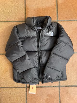 Chaqueta acolchada de The North Face con diseño bicolor. - Parte superior en color negro. - Parte inferior y mangas en color gris. - Cierre de cremallera frontal. - Logo de The North Face en el pecho. - Sin capucha. Si está interesado/a en otro color o talla de este mismo modelo, pregunta por privado y lo miramos.