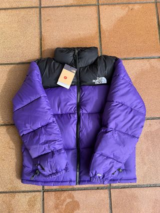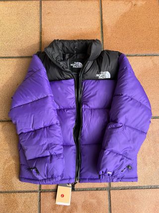 Chaqueta acolchada The North Face con un diseño bicolor. - Parte superior en color negro. - Mangas y parte inferior en color morado. - Cierre frontal de cremallera. - Cuello alto. - Sin capucha. Si está interesado/a en otro color o talla de este mismo modelo, pregunta por privado y lo miramos.