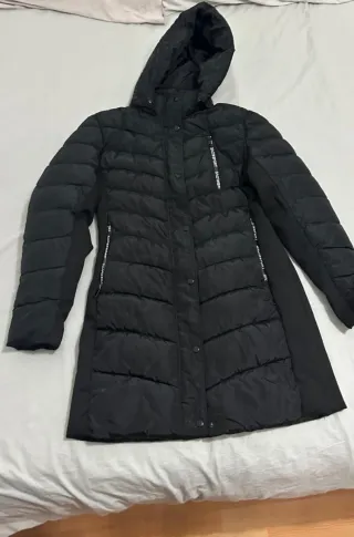Prenda de abrigo tipo plumífero con capucha. Comprado en CNfans pero es pequeña la talla. Todavía con etiquetas sin estrenar. - Diseño acolchado. - Cierre de cremallera. - Bolsillos frontales con cremallera. - Capucha ajustable.