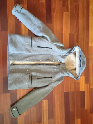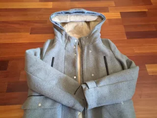 Elegante abrigo de vestir con detalles de lana y capucha. - Cierre de cremallera y botones. - Bolsillos frontales. - Forro interior. Precio de compra 120 euros.