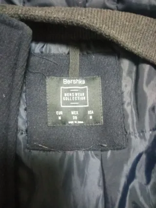 Abrigo de mujer, entallado hasta la cintura. Es talla M pero es pequeño,como una S. Medidas: hombros 38cm, pecho 46cm, largo 86cm, mangas 57 cm. - Cuello alto. - Cierre de doble botonadura con botones decorativos. - Corte entallado.