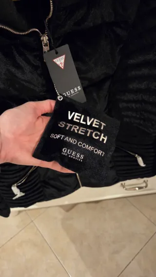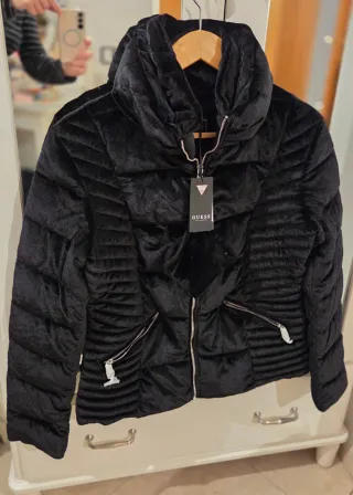 Chaqueta acolchada de terciopelo de Guess. Diseño moderno y elegante. - Tejido suave y confortable. - Cierre de cremallera. - Bolsillos laterales con cremallera.