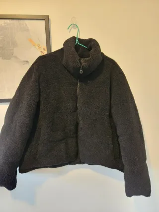 Chaqueta de tejido suave tipo teddy o borreguito. - Diseño corto y holgado. - Cuello alto. - Cierre de cremallera frontal. Chaqueta Teddy. Marca Only, talla XL. Relleno cálido. Usada 4 veces. Precio Zalando: 49.99. La vendo: 20