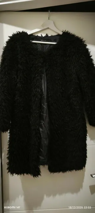 Abrigo de pelo sintético con un diseño moderno y llamativo. - Tacto suave y agradable. - Corte abierto. - Manga larga. - Nunca usado