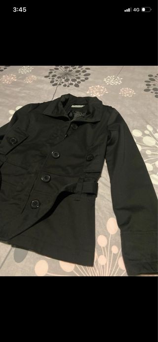 Chaqueta de Vero Moda en color negro. Cuenta con cinturón y botones. - Diseño acolchado. - Cuello alto. - Bolsillos frontales. Lleva cremallera para capucha pero no la tiene. Algo de desgaste en el color de los botones. Lleva botón de recambio. Usadparamir en moto e incluso con ligera nevada y no caló