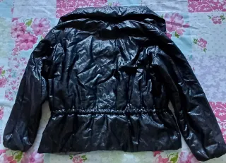 Cazadora de mujer con un diseño moderno y detalles únicos. La chaqueta pone L pero vale para alguien que use una 38 o 40 - Cierre de cremallera frontal. - Bolsillos laterales con cremallera. - Cuello redondo con cierre de botón. - Forro interior estampado. Nueva usada 2 veces