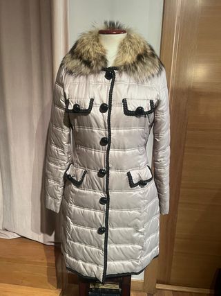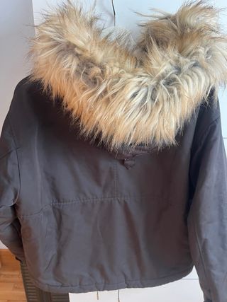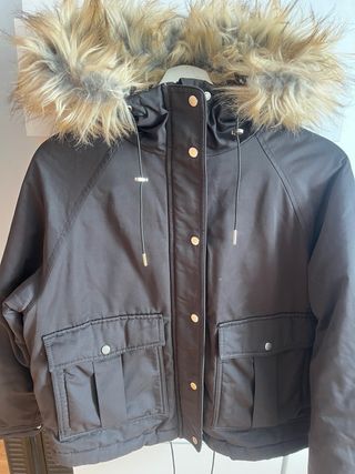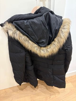 Abrigo de invierno con un diseño moderno y cálido. - Capucha con detalle de pelo sintético. - Cierre frontal con cremallera y botones. - Bolsillos frontales con solapa y cremallera lateral. - Puños y cintura elásticos. ( LE FALTA LA CREMALLERA CENTAL, ALGUN BOTÓN,Y EL BOLSILLO EXTERIOR, QUE TIENE A LA ALTURA DEL PECHO,ESTA DESCOSIDO EN UN LATERAL)