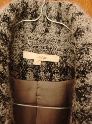 Abrigo con un diseño estampado en tonos grises y negros. Es una prenda de abrigo con un estilo clásico. - Diseño de doble botonadura. - Cuello solapa. - Bolsillos frontales. De lana, como nuevo aunque el forro de dentro tiene algún hilo suelto. Envío rápido y disponible