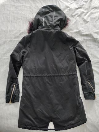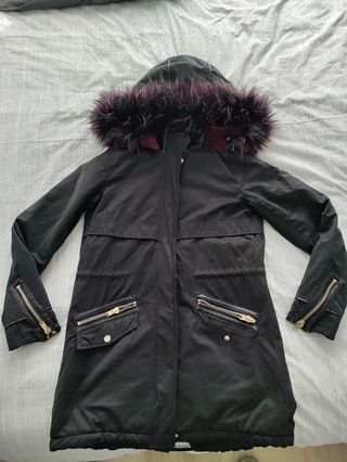 Abrigo Zara Negro con Capucha y Pelo