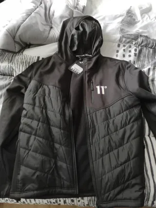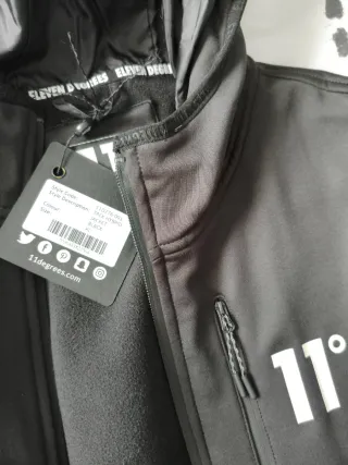 Chaqueta estilo Trek Hybrid de la marca Eleven Degrees. Confeccionada en color negro y talla XL. - Cremallera frontal. - Bolsillos con cremallera. - Capucha integrada.