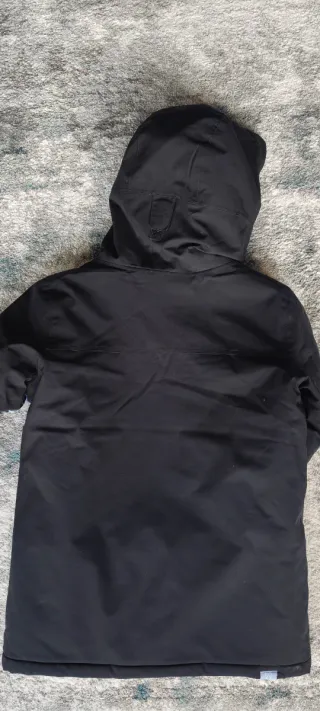 Abrigo Volcom de color negro en talla S. Diseño moderno y funcional. Talla equivalente a M. Está en buenas condiciones. - Capucha integrada. - Cierre de cremallera. - Bolsillos frontales con cremallera. - Puños y bajo elásticos.