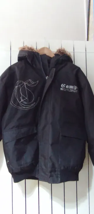 Chaqueta negra con un forro interior suave y cálido. - Capucha con forro. - Cierre de cremallera. - Bolsillos frontales.