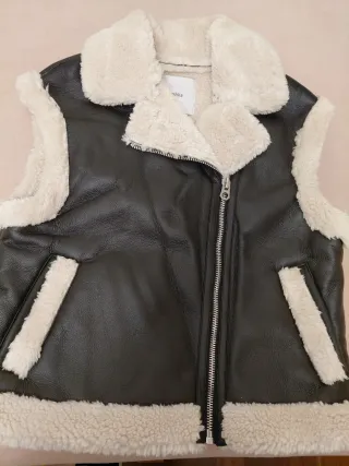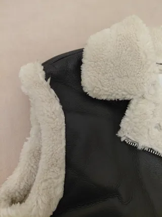 Chaleco estilo aviador con forro de borreguito. - Cierre de cremallera. - Cuello con solapas. - Bolsillos laterales.