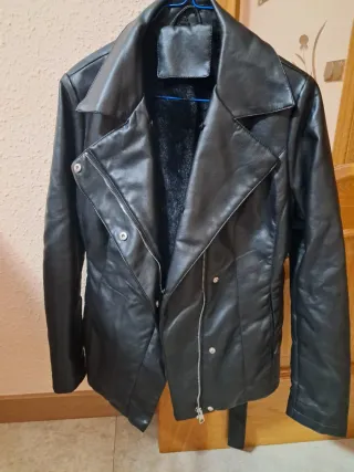 Chaqueta de cuero para hombre, con un diseño clásico y versátil. Tiene más de 12 años de antigüedad. - Material: Cuero. - Cierre frontal con cremallera. - Cuello redondo. - Bolsillos en el pecho con solapa y botón. - Puños y cintura elásticos.