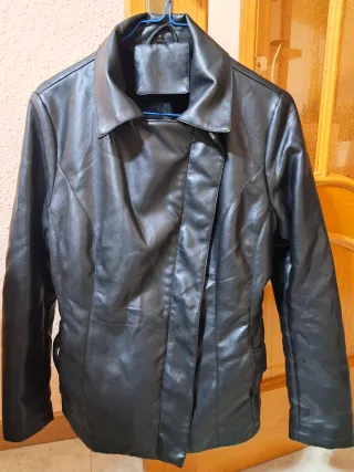 Cazadora de polipiel en color negro. - Material: 100% poliéster. - Diseño moderno y versátil.
