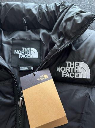 Chaqueta acolchada The North Face en negro, básica y muy cálida, perfecta para invierno y uso diario. 🏷 Talla: S (mens/hommes) 📏 Medidas: 66cm de largo x 46cm de axilas · Mangas: 66cm exteriores x 53cm interiores 🎨 Color: Negro con logos The North Face bordados en pecho y espalda en blanco ✅ Estado: Correcto, con marcas de uso, algo de brillo y pequeñas rozaduras en el tejido, pero sin rotos grandes ni pérdida evidente de relleno 🔍 Detalles: Cierre de cremallera completa, bolsillos laterales, bajo ajustable con cordón y acolchado sintético en paneles horizontales, estilo clásico puffer ideal para looks urbanos y outdoor.