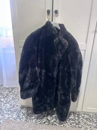 Abrigo de pelo sintético negro, forro morado Abrigo elegante y atemporal, con un tacto suave y un forro satinado en color morado que aporta un detalle sofisticado. Ideal para ocasiones especiales o para elevar un look diario con un aire chic. Apenas utilizado, se encuentra en excelente estado. • Color: negro • Forro interior: morado satinado • Cierre: botones ocultos • Talla: (indica la tuya, ej. M/L) • Estado: en muy buen estado, apenas usado. Ideal para los días fríos de invierno y combina tanto con vaqueros como con vestidos.