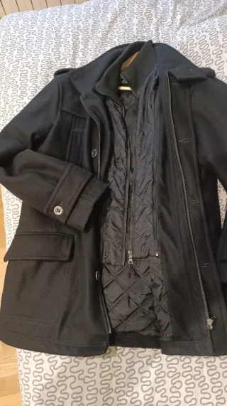 Abrigo de Zara azul marino, con detalles en negro. Muy calentito.