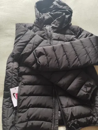 Abrigo acolchado de la marca Nike, con etiqueta. - Diseño acolchado. - Cierre de cremallera. - Capucha integrada.