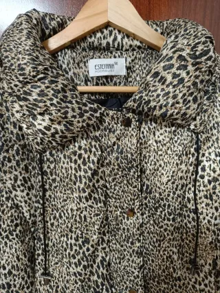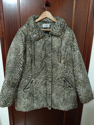 Abrigo con estampado de leopardo en tonos beige y negro. - Cuello alto. - Cierre de cremallera y botones. - Bolsillos delanteros. Comprado en Dori Modas. Precio original 80€